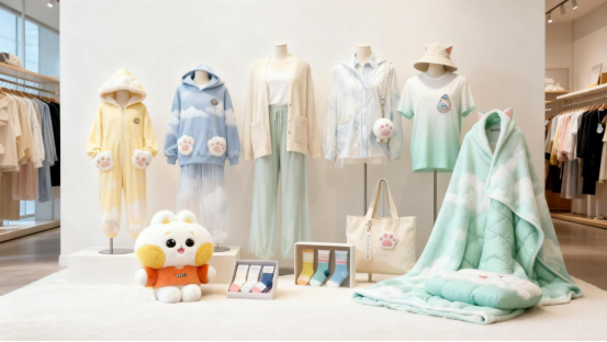 本季穿搭系列的设计元素深度呼应动漫的故事场景与角色形象,让服饰成为连接IP故事与日常生活的情感桥梁。当消费者身着系列服饰,仿佛置身动漫中的治愈世界,实现 “穿着即陪伴” 的情感体验。这种 “内容-产品-消费” 的良性循环,不仅为穿搭系列注入鲜活的故事生命力,更强化了品牌IP的情感辨识度与市场影响力,让叮当猫IP从 “商品符号” 升级为 “国民级陪伴载体”。