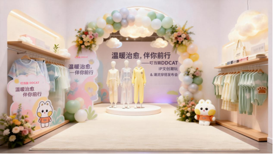 从深耕服装领域、以优质服饰陪伴一代又一代人成长,到锚定 “全龄 IP 生活生态” 开启战略跃迁,叮当猫 DDCAT 始终以 “温暖快乐相伴” 为核心理念,每一步进阶都紧扣时代需求。“温暖、治愈、快乐” 不仅是品牌的精神图腾,更成为构建新范式的核心逻辑:以 IP 为纽带覆盖全龄圈层,以多元品类渗透生活场景,让品牌价值从单一产品延伸至 “全场景生活方式”。