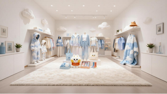系列以 “把云朵穿在身上,一家人的‘移动云朵’” 为核心创作理念,将 “云朵拥抱毛绒” 的治愈质感转化为可穿戴体验,实现 “随时抱、随时捏、随时安抚” 的情感价值。全龄覆盖的产品矩阵精准适配多元需求:居家场景的云朵质感连体薄款睡衣,精选有机棉与云朵纱复合面料,可拆式尾巴配件拆下即变抱枕;校园与休闲场景的抱抱帽春秋款卫衣,猫爪装饰口袋搭配 8 秒回弹记忆粒子,注入潮趣治愈活力;通勤与出行场景的轻云防晒服、防蚊裤,以及双面设计的针织开衫,兼顾时尚与实用;全龄友好的云朵纱 T 恤,冰感面料便携易收纳,6 种治愈色系适配各类场景;亲子治愈色中筒袜礼盒则成为亲子搭配与送礼优选。
