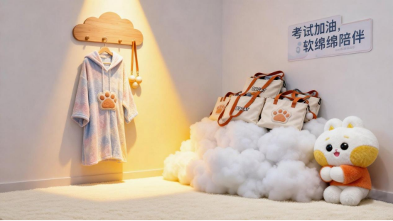 季节限定单品更实现全时段治愈加码:考试季 “逢考必过” 连帽浴巾搭配带猫爪硅胶球的减压帆布袋,为学子传递好运;户外场景 UPF50 + 云朵速干防晒衬衫搭配猫耳渔夫帽,收纳袋设计成猫形挂饰;出行场景的亲子羽绒披毯,展开为披风、折叠变抱枕,适配各类出行需求。质感上,系列选用低饱和暖色系缓解焦虑,采用 GRS 认证再生聚酯与有机棉等环保面料,搭配磁吸扣提升舒适度,更暗藏情绪文案、NFC 暖声徽章等 “治愈编码”,让治愈融入细节。