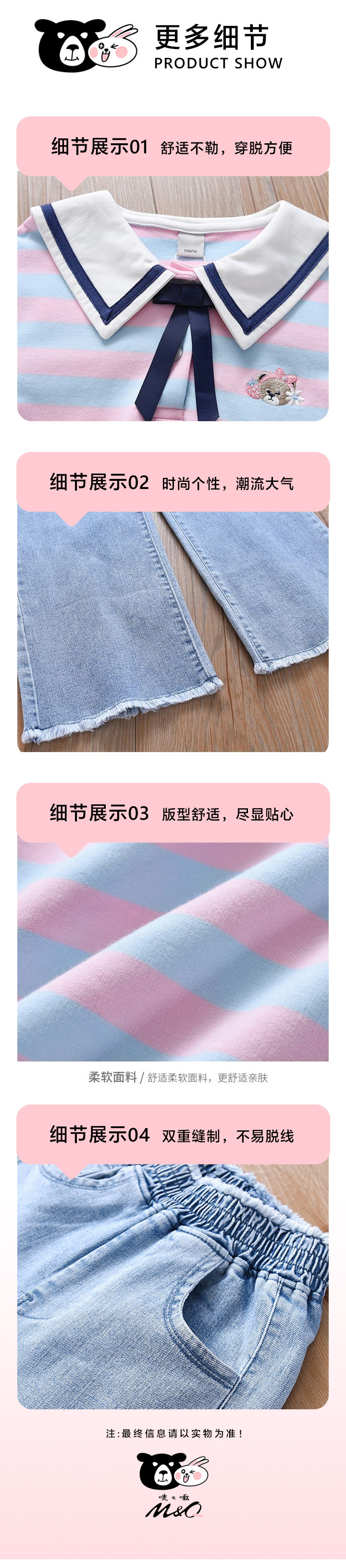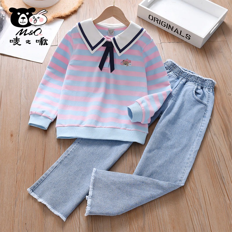 M&Q唛之啾女童春装套装2023新款春秋洋气时髦童装大童儿童女运动牛仔裤卫衣